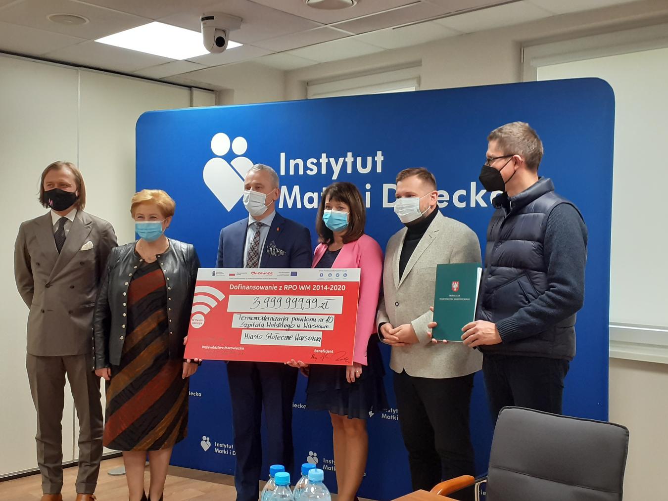Projekt pn. „Termomodernizacja pawilonu nr 10 Szpitala Wolskiego SPZOZ w Warszawie wraz z montażem odnawialnych źródeł energii” dofinansowany jest ze środków Europejskiego Funduszu Rozwoju Regionalnego w ramach Regionalnego Programu Operacyjnego Województwa Mazowieckiego na lata 2014-2020.